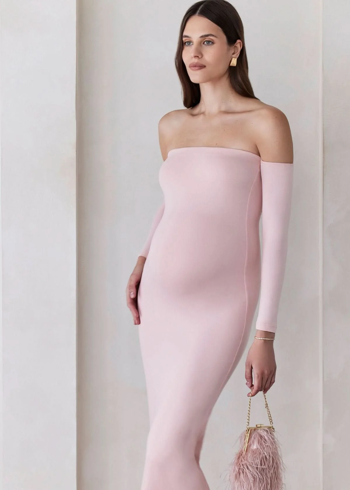 The Angelina Off-the-Shoulder Maternity Dress