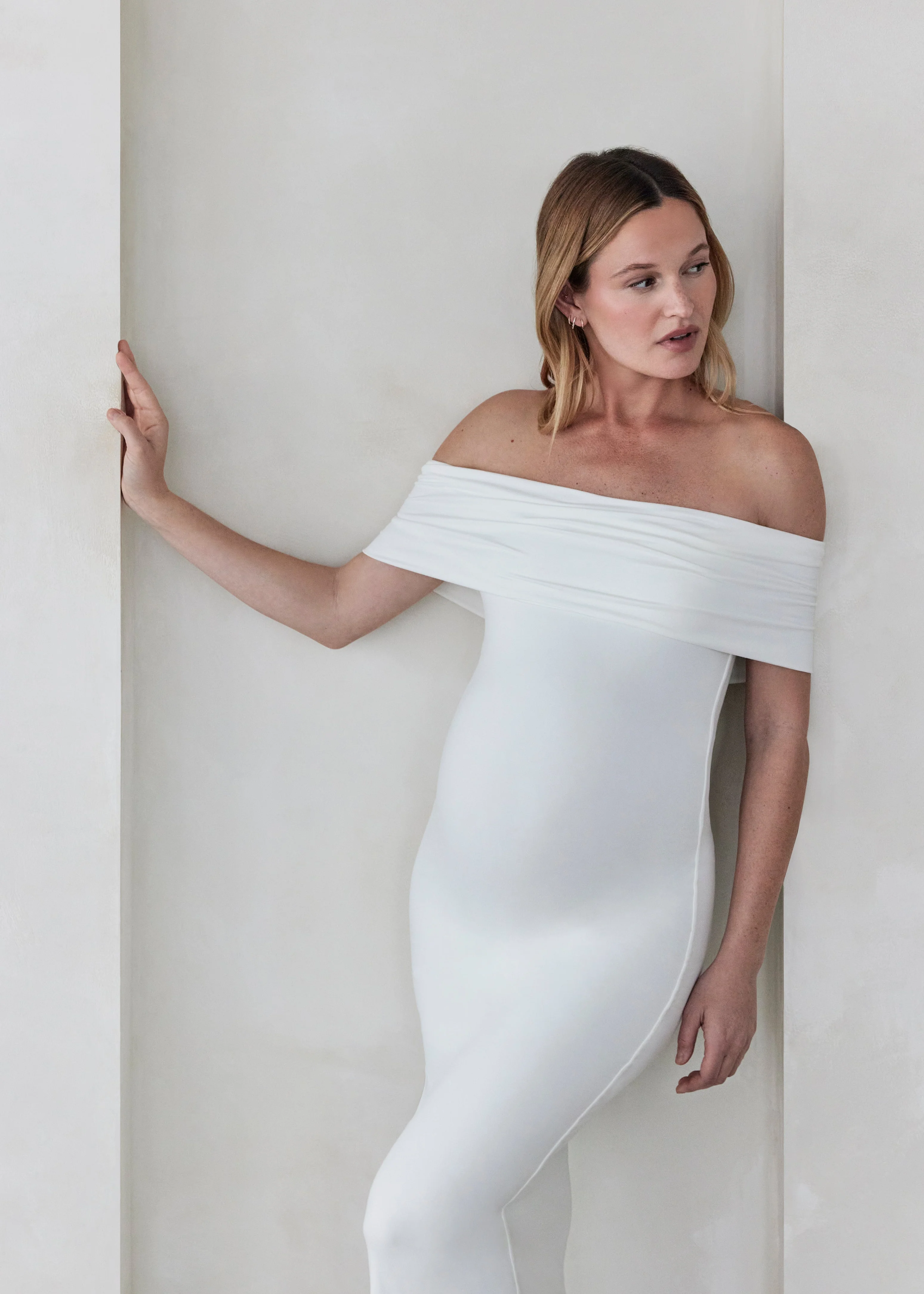 The Bianca is a classic dress, whether adding a timeless flair to your maternity wardrobe, or, to wear for your baby shower or maternity photo shoot. This best selling maternity dress is perfect for any occasion. She's double lined for extra coverage and support, and made with our signature buttery soft, 4 way stretch brushed jersey fabric. Bumpsuit is made to be worn throughout all stages of life, transitioning with the body as it stretches and grows throughout maternity, postpartum and beyond. The Bianca is a dress you will live in during maternity and continue to wear throughout postpartum and beyond. Its that good.